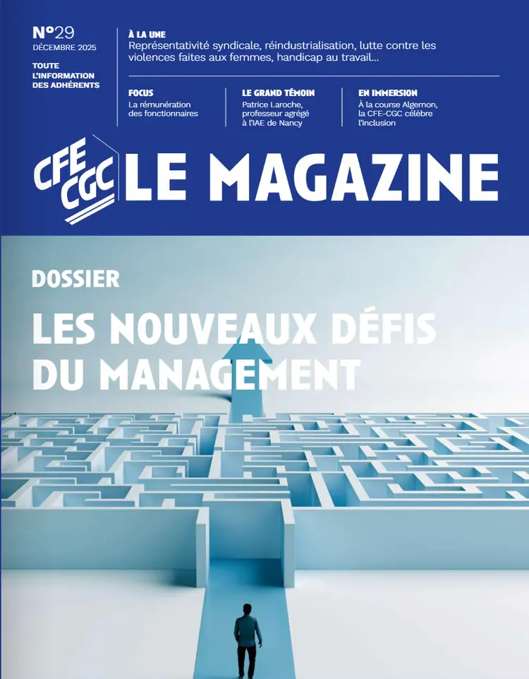 Un dossier sur les nouveaux défis du managementFocus : rémunération des fonctionnaires : comment ça fonctionne ?En immersion à la course Algernon, la CFE-CGC célèbre l’inclusion et la solidaritéInterview de Patrice Laroche (IAE Nancy), auteur de l’étude IRES/CFE-CGC sur les disparités salarialesCons